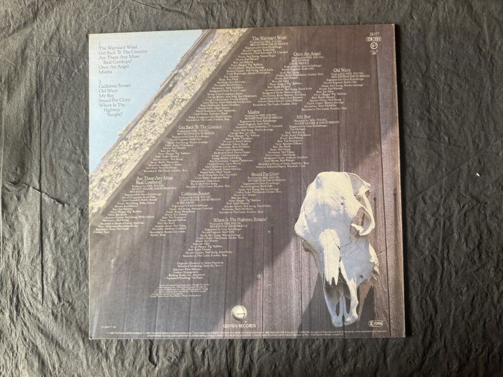 Als vroegere LP verzamelaar van Neil Young mocht deze natuurlijk niet ontbreken om te hebben. Old Ways is zijn vijftiende studioalbum uit 1985. Een van zijn country albums, en een die in het verlengde ligt van Comes A Time uit 1978 (dat ik in mijn album top 1760 heb staan). Opgenomen met zijn muzikale vrienden Ben Keith, Tim Drummond, Karl T. Himmel, Spooner Oldham en Rufus Thibodeaux, die allemaal eerder al Young hadden begeleid op Comes A Time. Ook zijn Willie Nelson en Waylon Jennings te horen op een paar nummers. De nummers Old Ways, Depression Blues (later terecht gekomen op de verzamelaar Lucky Thirteen), California Sunset, My Boy, Are There Any More Real Cowboys? en Silver And Gold (terecht gekomen op het gelijknamige album uit 2000) stammen allemaal uit deze sessies. Veel van de nummers op het album weerspiegelen een gevoel van tevredenheid met het gezinsleven. Once An Angel is een eerbetoon aan zijn toenmalige vrouw, Pegi, terwijl My Boy een ode is aan zijn zoon Zeke. The Wayward Wind is een cover van een Gogi Grant nummer uit 1955 dat Young zich uit zijn jeugd herinnert in Ontario, in een versie van Frankie Laine. Bound For Glory is een ballad die het verhaal vertelt over een affaire tussen een vrachtwagenchauffeur en een lifter. De samenwerking met Willie Nelson en Youngs duik in de boerengemeenschap zou een blijvende impact hebben op de interesse van hem in de financiele situatie van kleinschalige familieboeren. Hij zou daarom in deze periode samen met Nelson en John Mellencamp Farm Aid oprichten en in de daaropvolgende decennia bijna elk jaar benefietconcerten geven.
